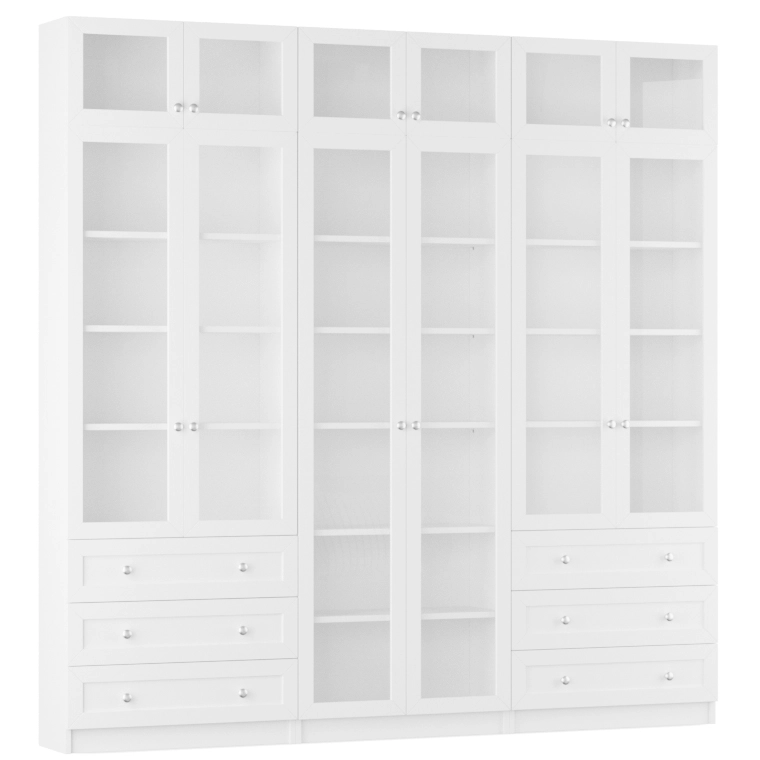 Комплектация: фасады - рамка МДФ квадро + вставка ЛДСП/стекло простое, задняя стенка ЛДВП белого цвета, ручка кнопка КН-1 хром, петли без доводчика, роликовые направляющие