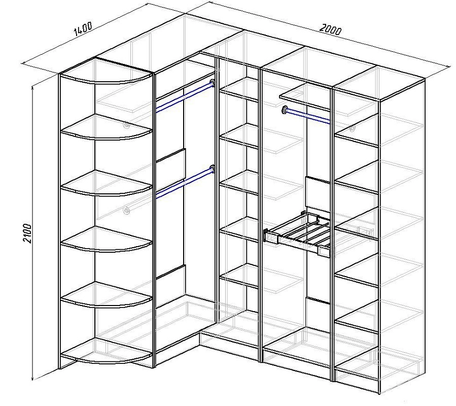 | Шкафы распашные, угловые | 350 | 800 | 500 |