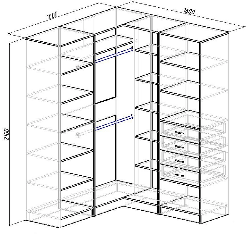 | Шкафы распашные, угловые | 350 | 800 | 500 |