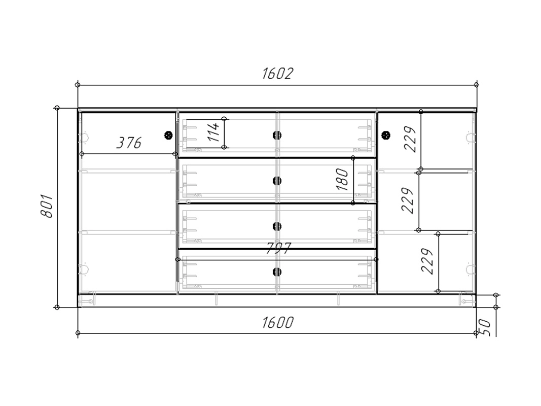 Комплектация: шариковые направляющие 100% выдвижения без доводчика, петли без доводчиков