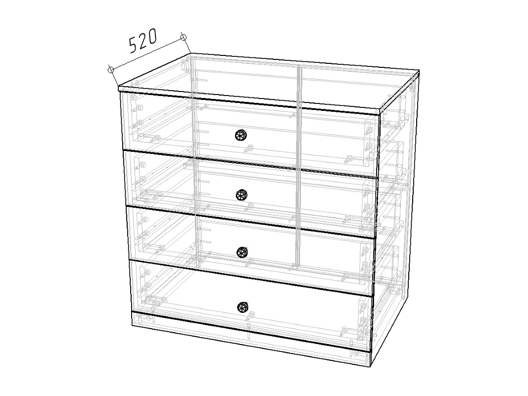Комплектация: шариковые направляющие 100% выдвижения без доводчика