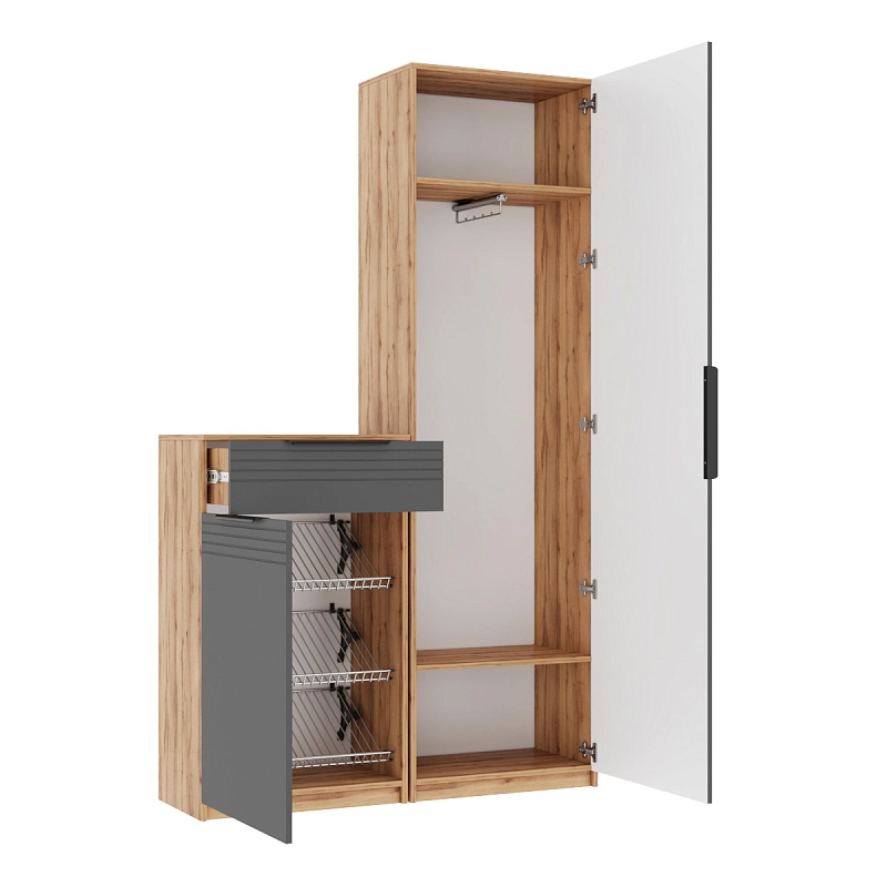 Прихожая Астрис-4 Графит продаётся в разнообразных цветовых решениях. Выберите один из 60 цветов корпуса и один из 59 цветов фасада, чтобы получить неповторимый дизайн своей прихожей. Только у нас вы можете купить эту прихожую из высококачественных материалов по самой низкой цене.