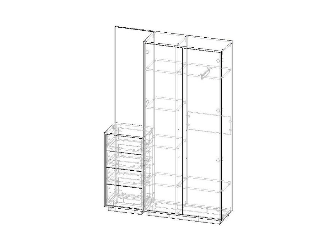 ЛДСП 16мм. Кромка в цвет корпуса. Направляющие на выдвижные ящики 100%. Штанга выдвижная 300мм. Ручки на шкаф арт.39215, ручки на комод арт. 39241