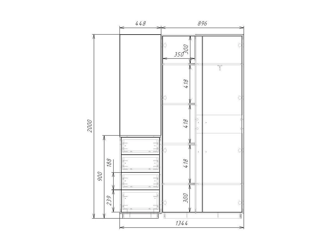 | Шкафы распашные, угловые | 350 | 800 | 500 |