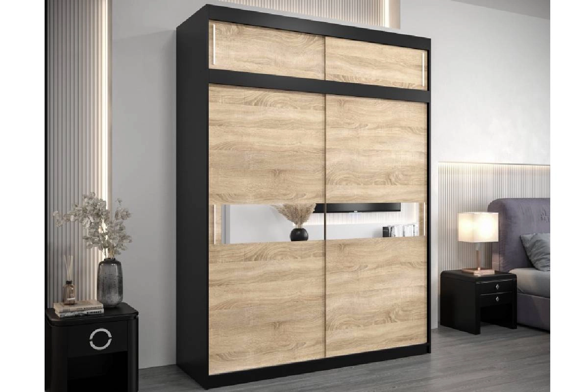 Шкаф-купе Бенито-2А Чёрный/Дуб Сонома