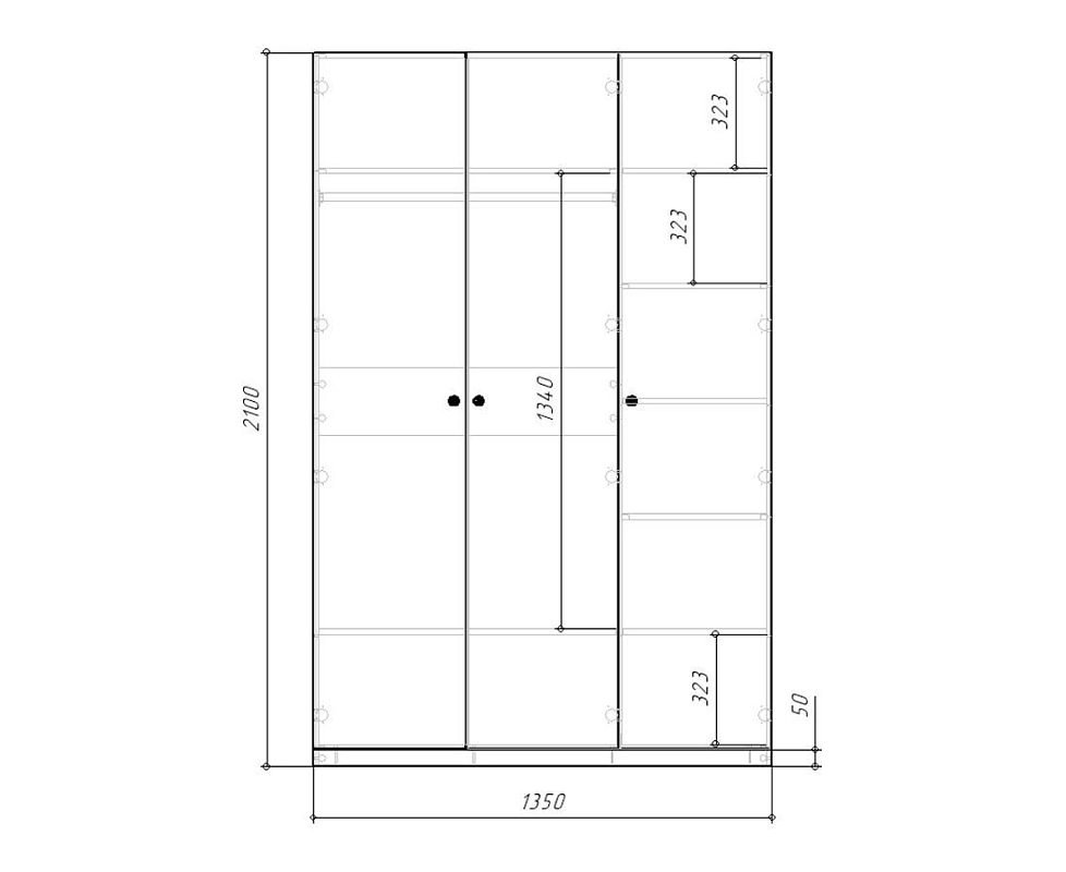 | Шкаф-купе 3 дверный (5-6 пачек) | 450 | 1400 | 700 |