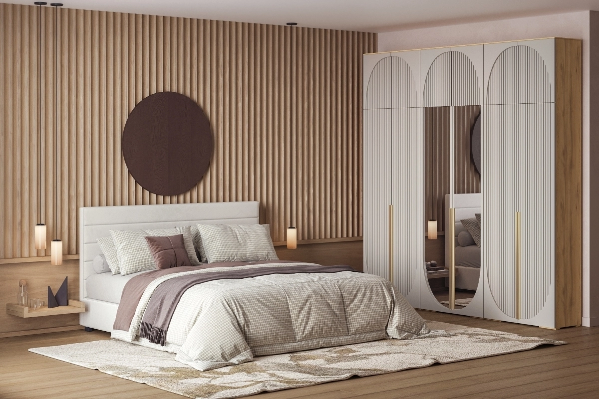 Шкаф распашной Брей-3.1 с антресолью Кашемир/Дуб Золотистый