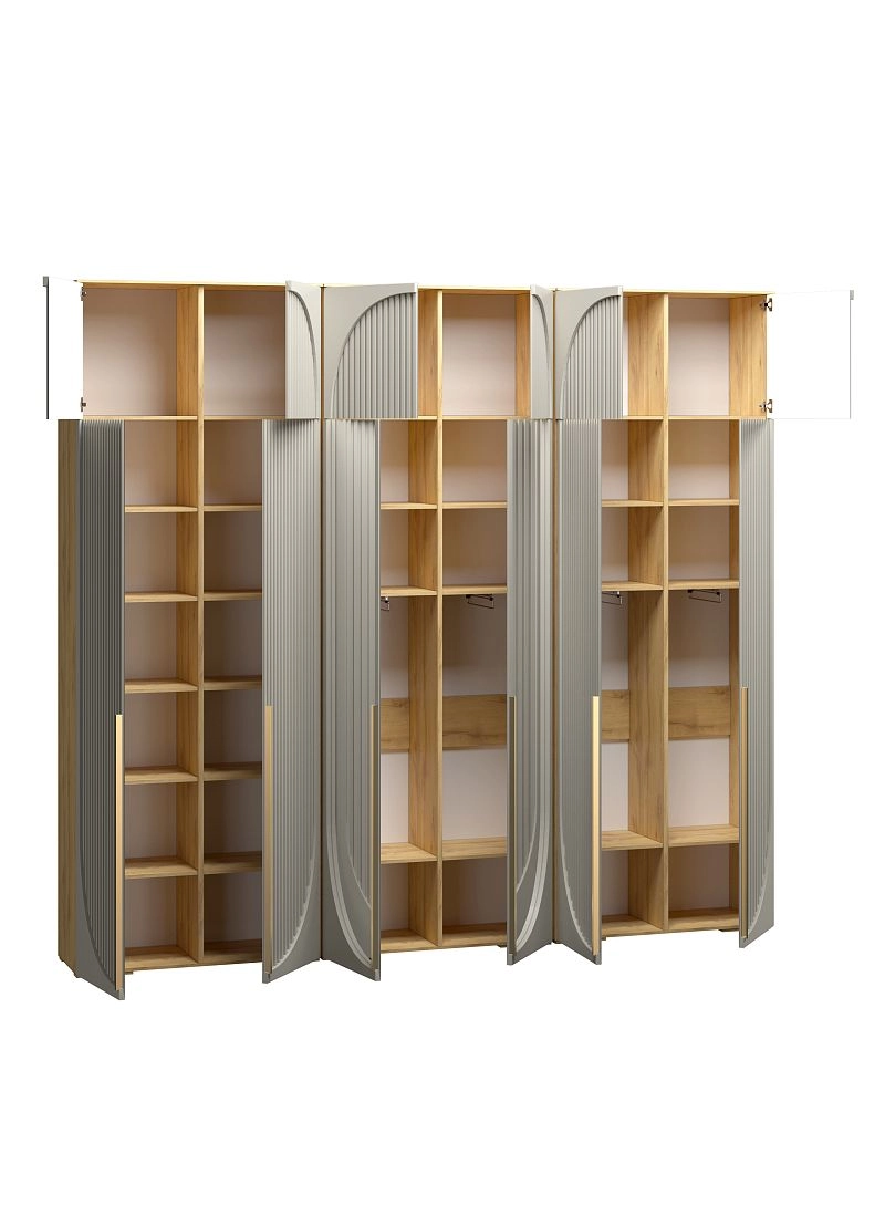 Размер отделений в каждом наполнении изготавливается по стандарту фабрики и может отличаться от фото. Если вам необходимы определенные размеры отделений в наполнении согласуйте это в чате с менеджером. При высоте шкафа 230-270 см антресоль слитная, 280-310 см съемная.