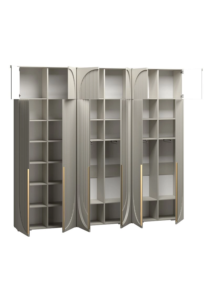 Размер отделений в каждом наполнении изготавливается по стандарту фабрики и может отличаться от фото. Если вам необходимы определенные размеры отделений в наполнении согласуйте это в чате с менеджером. При высоте шкафа 230-270 см антресоль слитная, 280-310 см съемная.