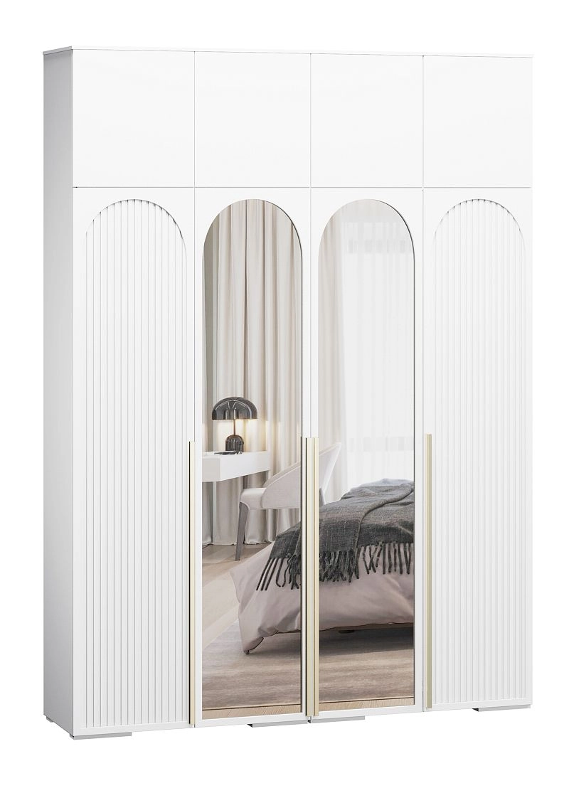Шкаф распашной Брей-4 Хит с антресолью с зеркалами Белый