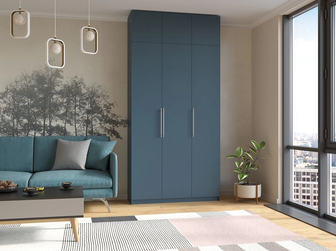 Шкаф распашной Калифорния-3 с антресолью Альби Полуночно-синий