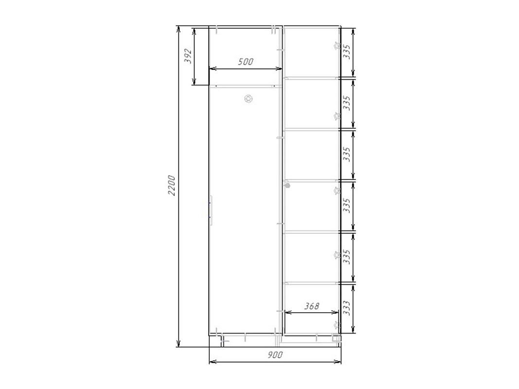 | Шкафы распашные, угловые | 350 | 800 | 500 |