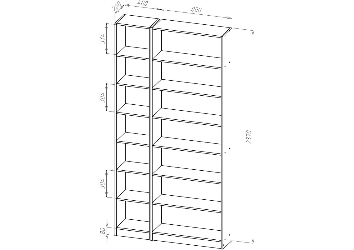 | Книжные шкафы, стеллажи от 600 мм до 1000 мм | 350 | 1000 | 600 |