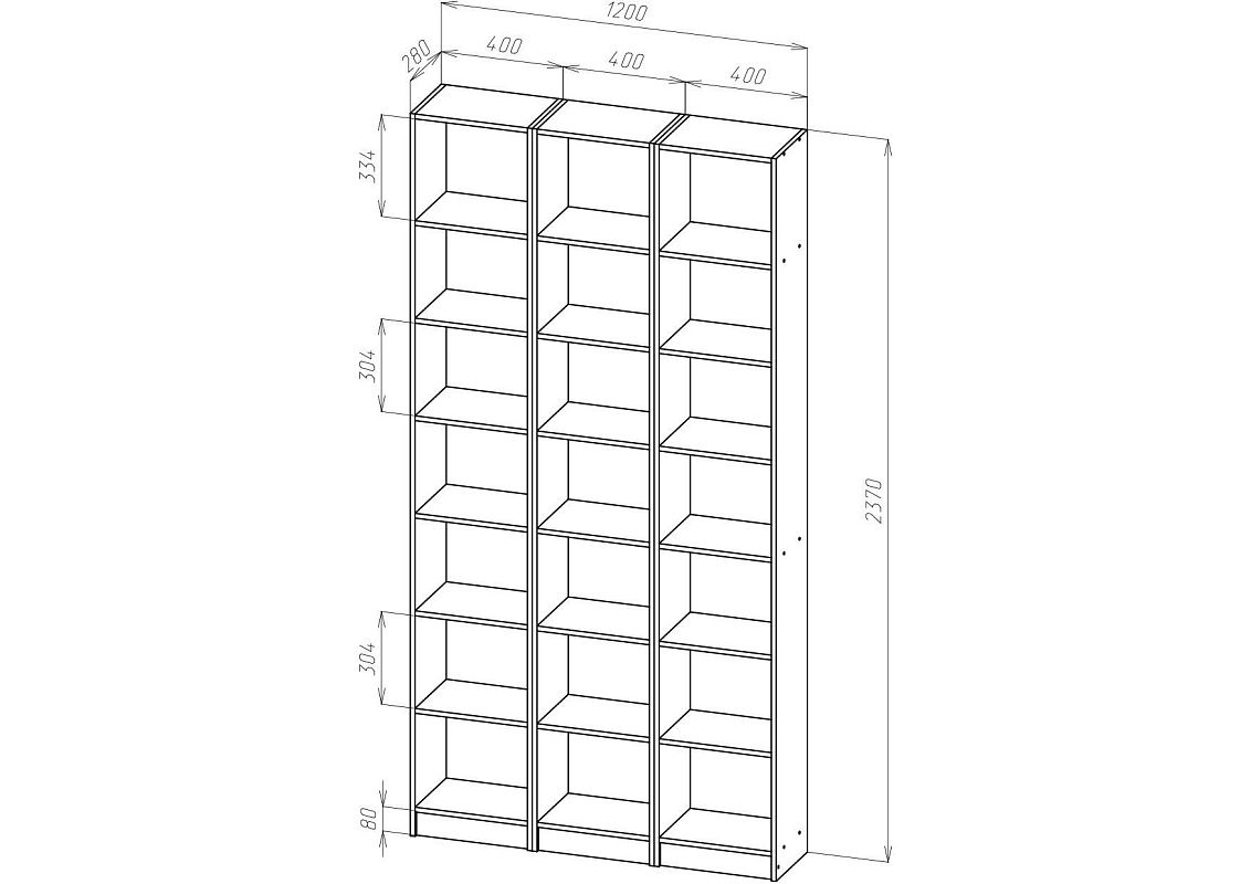 | Книжные шкафы, стеллажи от 600 мм до 1000 мм | 350 | 1000 | 600 |