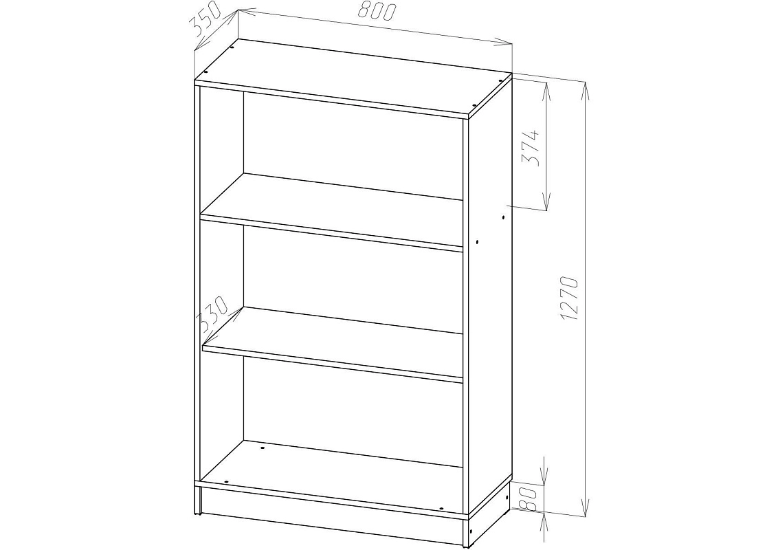 | Книжные шкафы, стеллажи от 600 мм до 1000 мм | 350 | 1000 | 600 |