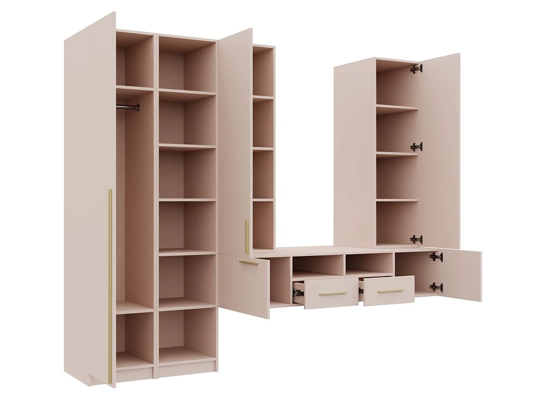 Петли без доводчиков. Направляющие шариковые 100% выдвижения без доводчика. Штанга металл Ф25мм. Ручки: Ручка CPA1 мебельная накладная м.ц.160 мм L 188мм,алюминий золото RCPА1A.188GADI, Ручка CPA1 мебельная накладная м.ц. мм L 1000мм,алюминий золото RCPА1A.1000GADI